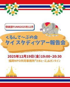 2025年11月26日 / 最終更新日時 : 2025年11月26日 mami FUNNからのお知らせ 11/27(木)は事務所を閉所します11/27(木)は出張対応のため、事務所を閉所いたします。御用のある方は、メールにてご連絡ください。Email:funn@ngofukuoka.netご不便をおかけしますが何卒ご理解いただきますよう、お願い申し上げます。この記事が気に入ったらフォローしよう! @funn_ngo