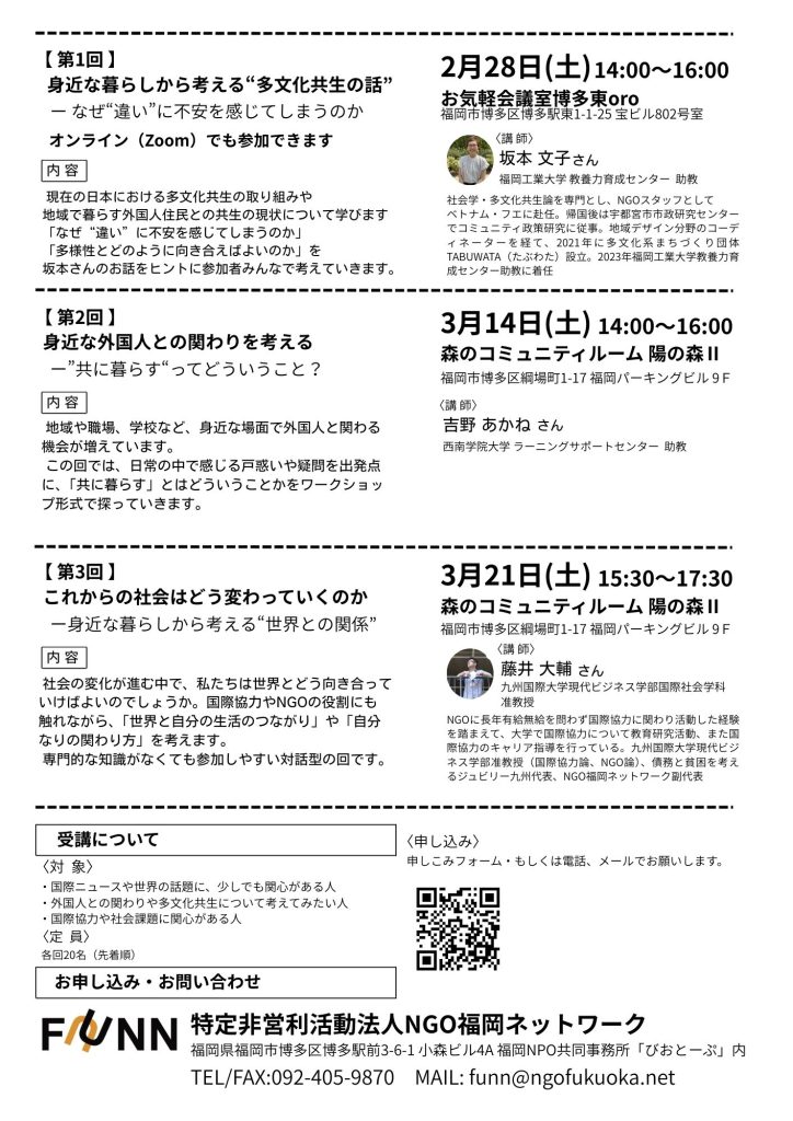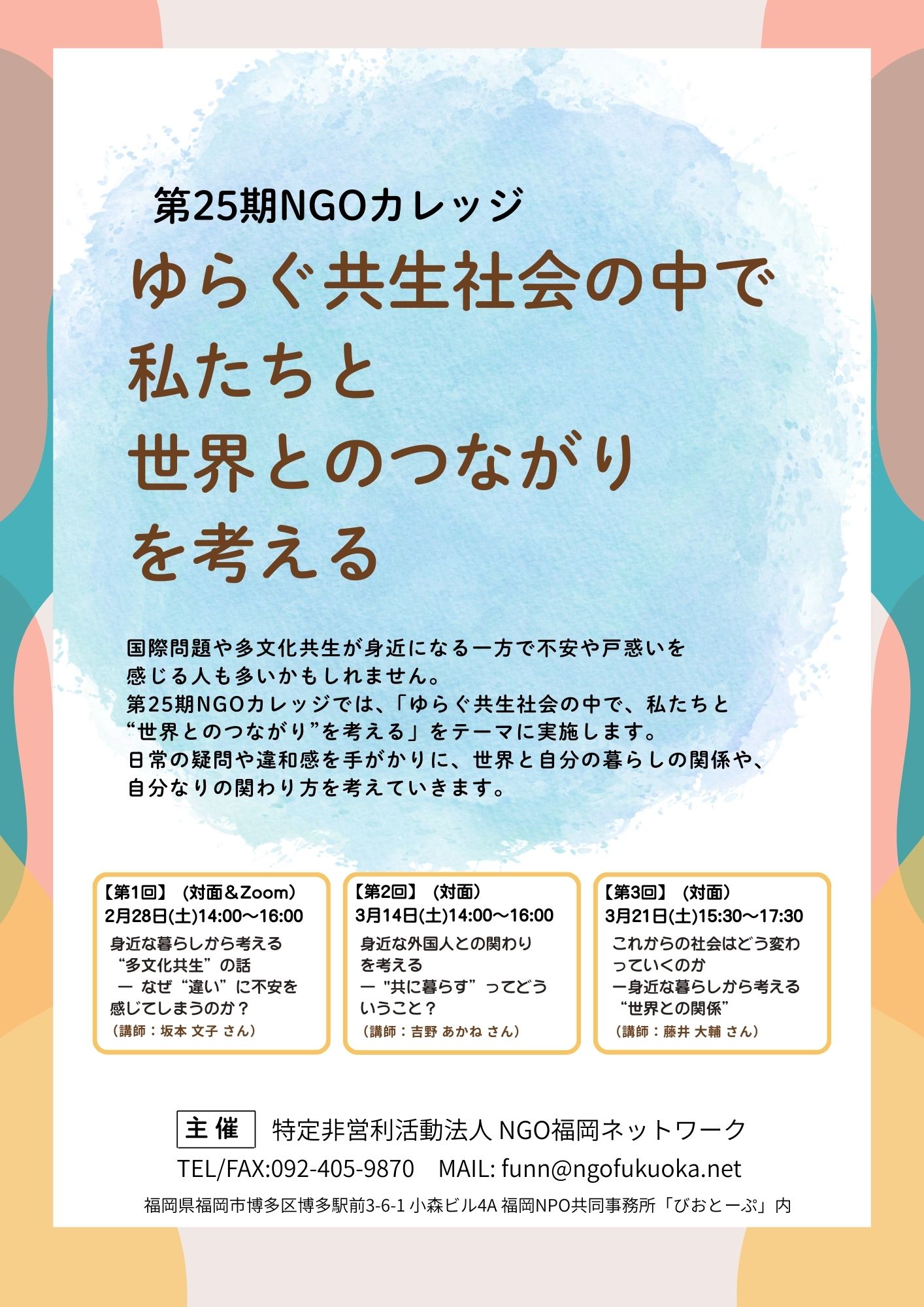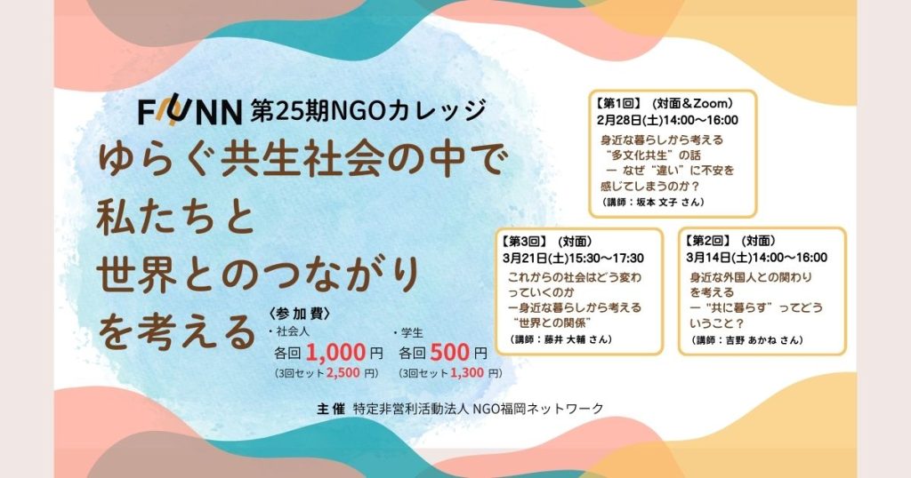 第25期NGOカレッジでは、「ゆらぐ共生社会の中で、私たちと“世界とのつながり”を考える」をテーマに3回シリーズで開催します。