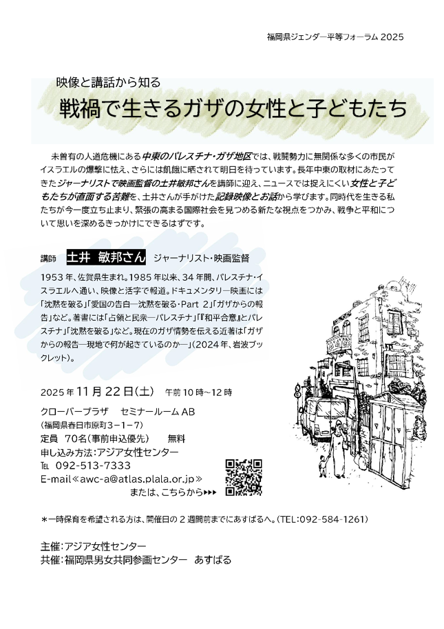 【NPO法人 アジア女性センター】【映像と講話から知る】戦禍で生きるガザの女性と子どもたち